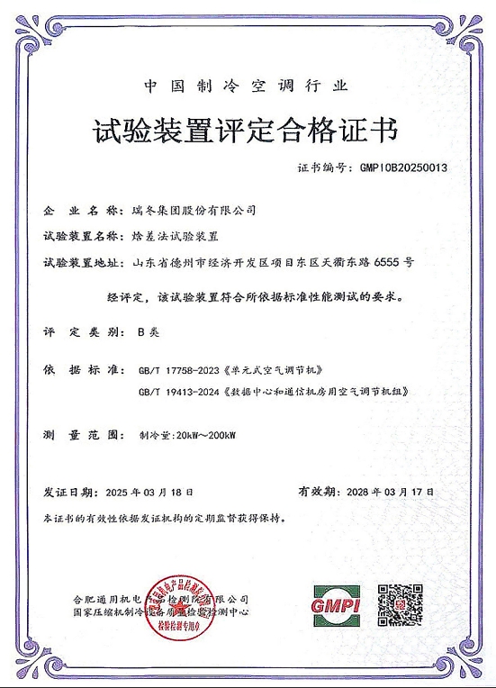 شهادة ترخيص واعتماد مركز اختبار فرق المحتوى الحراري HVAC -