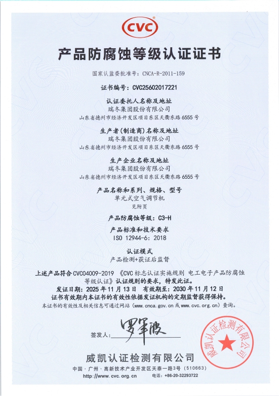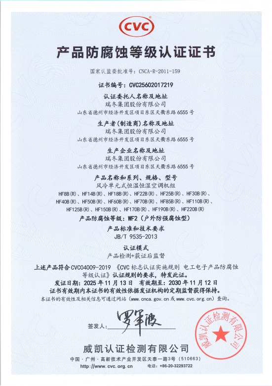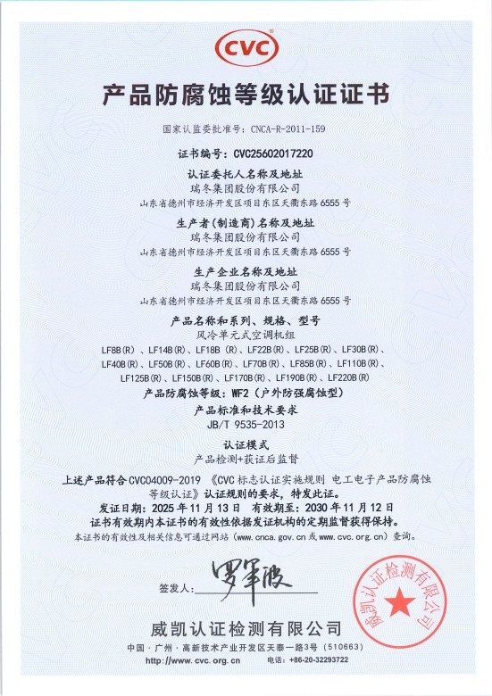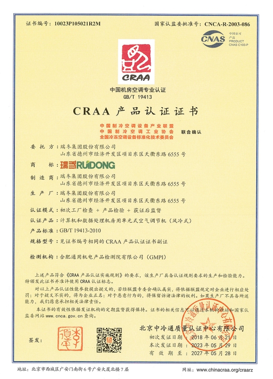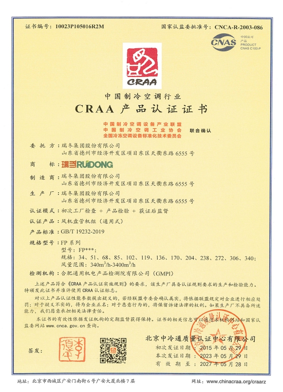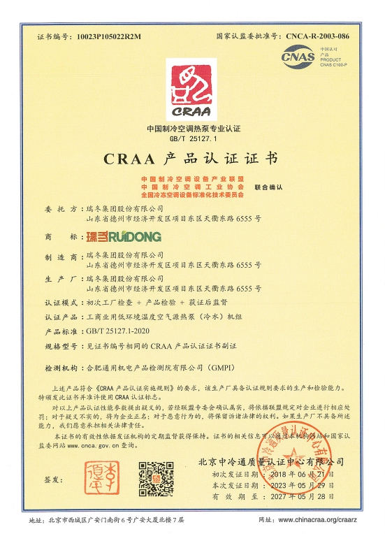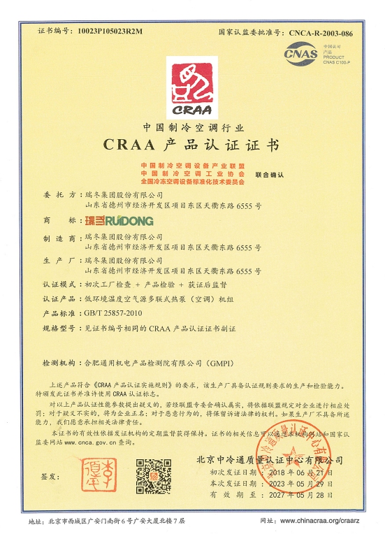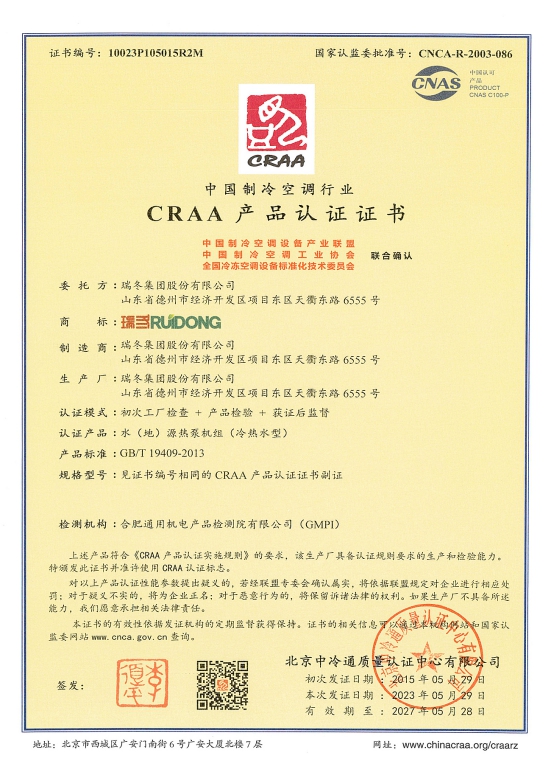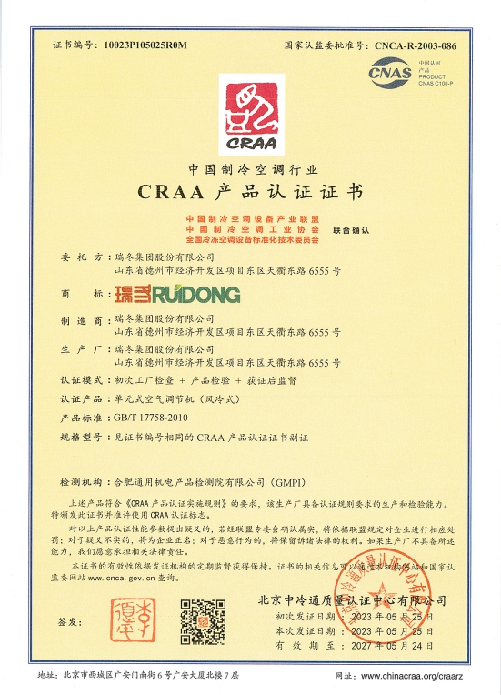 شهادات اعتماد الجمعية الصينية لصناعة التبريد وتكييف الهواء (CRAA)