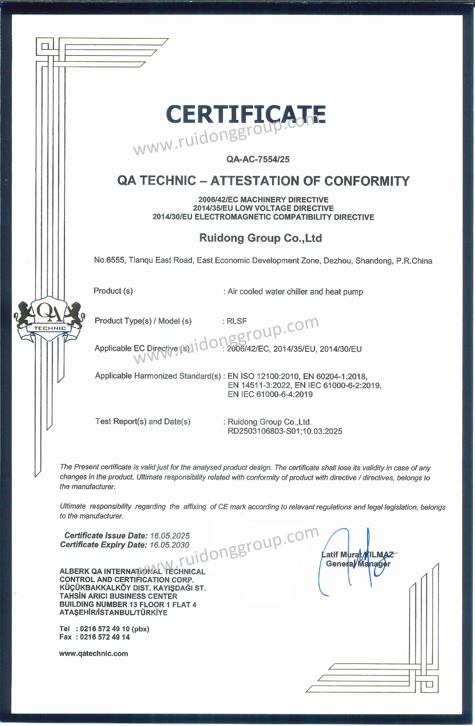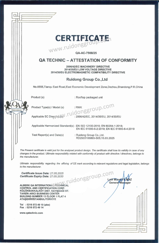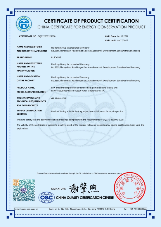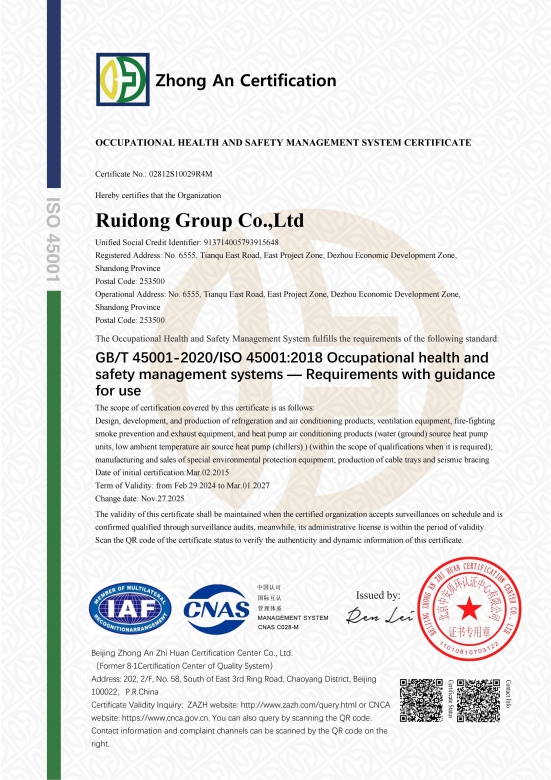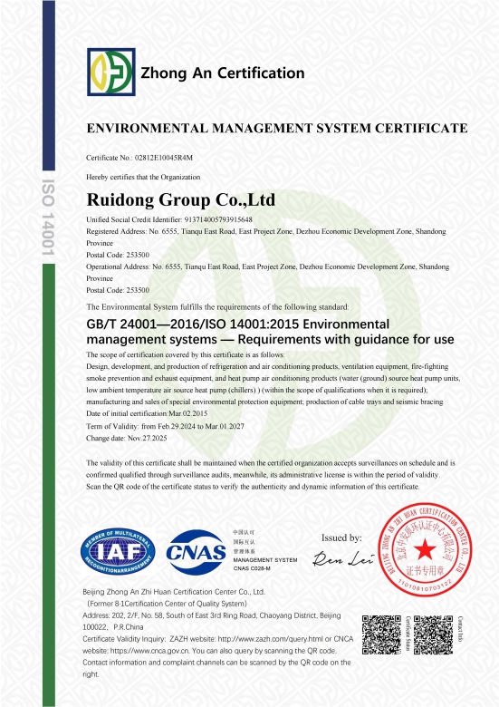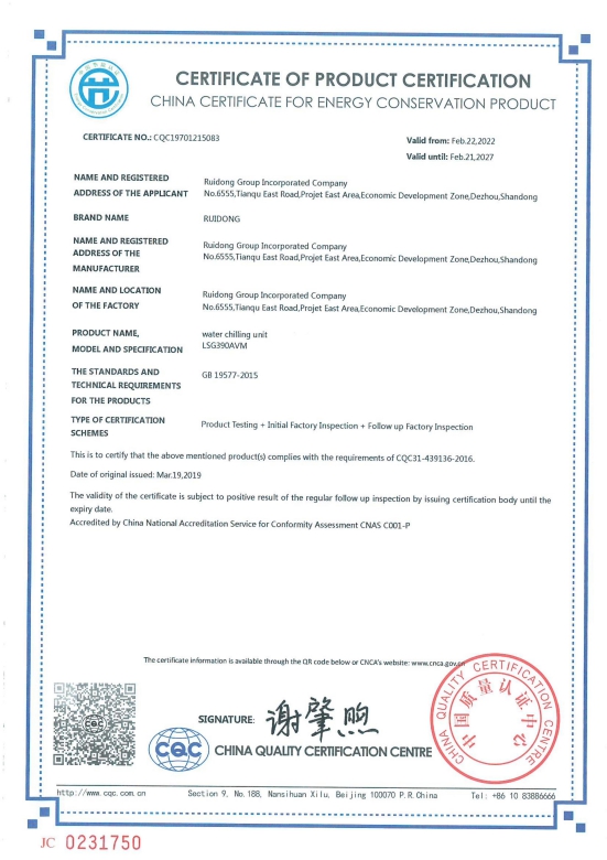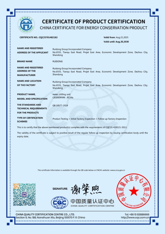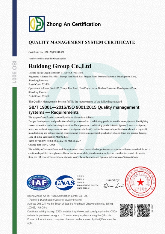 شهادات اعتماد الجمعية الصينية لصناعة التبريد وتكييف الهواء (CRAA)