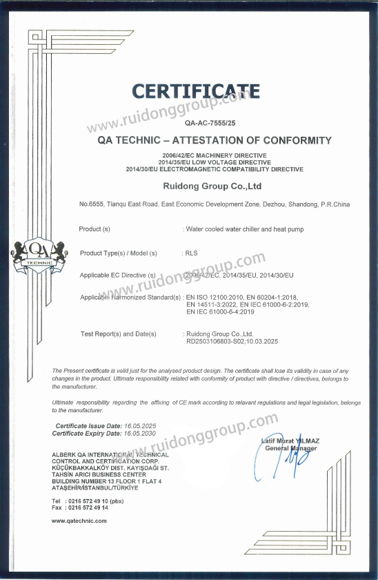 الشلرات والمضخات الحرارية المبردة بالماء – حاصلة على شهادة CE