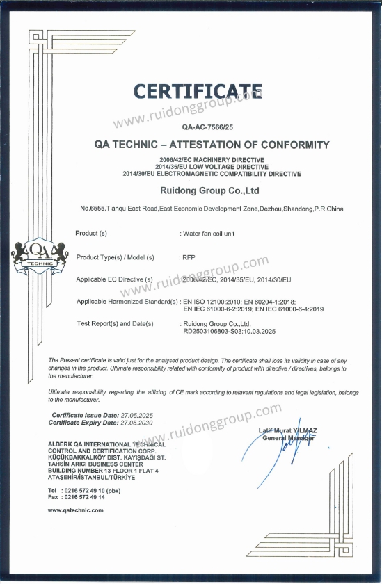 وحدات فان كويل مبردة بالماء – حاصلة على شهادة CE