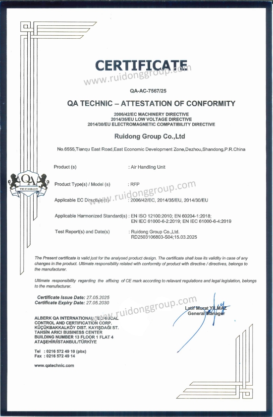 وحدات مناولة الهواء – حاصلة على شهادة CE